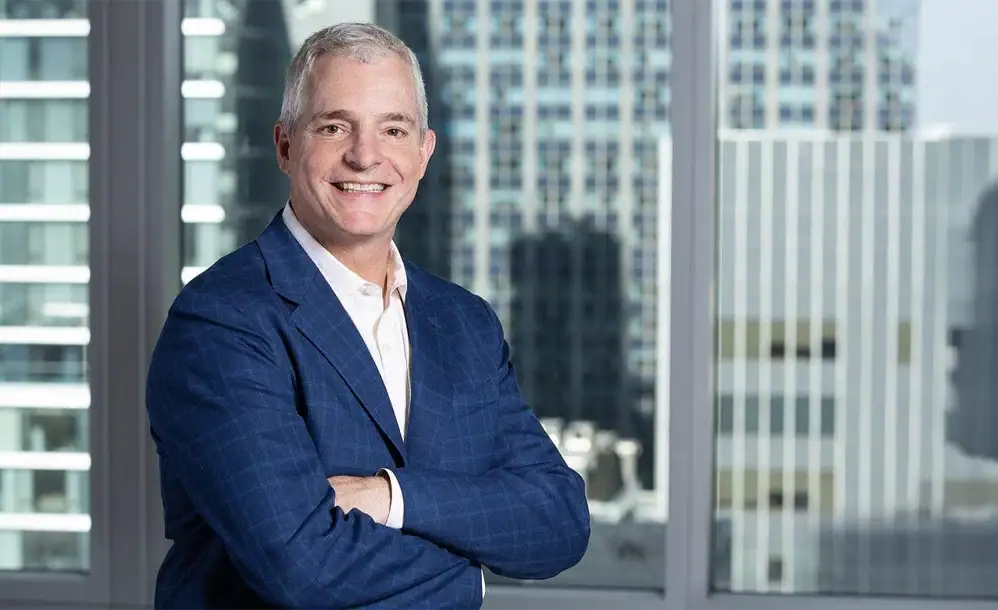 This environmental portrait uses a high-rise boardroom setting to position the agent as a definitive choice for high-stakes commercial real estate in urban markets.